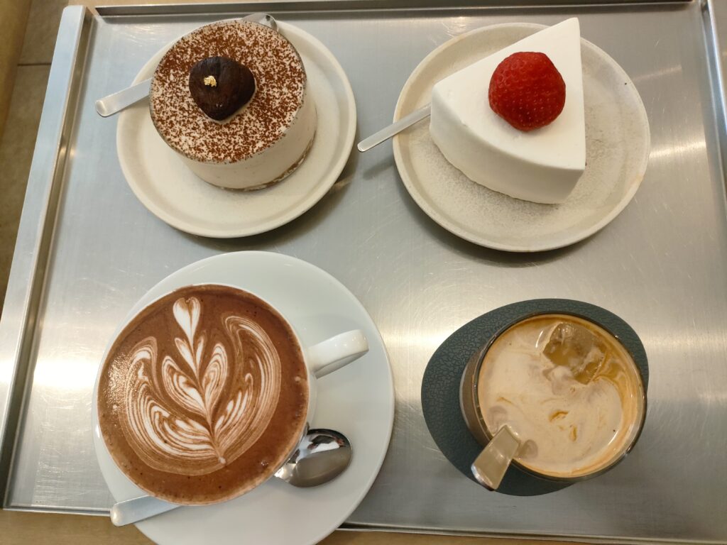 写真のケーキは前に大阪の韓国街で行ったお店にて。冷たいフラットホワイトが美味しかった。フラットホワイトってCOSTAの甘いのしか飲んだことなくて、「本当のやつ」は甘くなく新鮮な美味しさ。それ以来本場のフラットホワイトをずっと探している。地元には見つけられていないが、先日京都伏見のカフェで発見した。やはり美味しかった。いつかオーストラリアに行ってフラットホワイトを延々飲みたいな・・・。